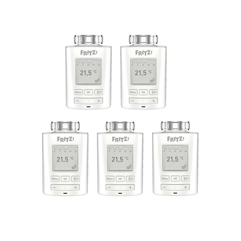 Der AVM FRITZ!DECT 301 ist ein smartes Thermostat, welches es Dir ermöglicht, mit Hilfe von Deinem Smartphone oder Notebook die gewünschte Temperatur in Deinem Zuhause zu erreichen. Damit sparst Du bis zu 30% Energie- und Heizkosten. In diesem Set erhältst Du 5 Stück dieser intelligenten Heizkörperregler, somit ist ein effizientes und angenehmes Heizen garantiert.