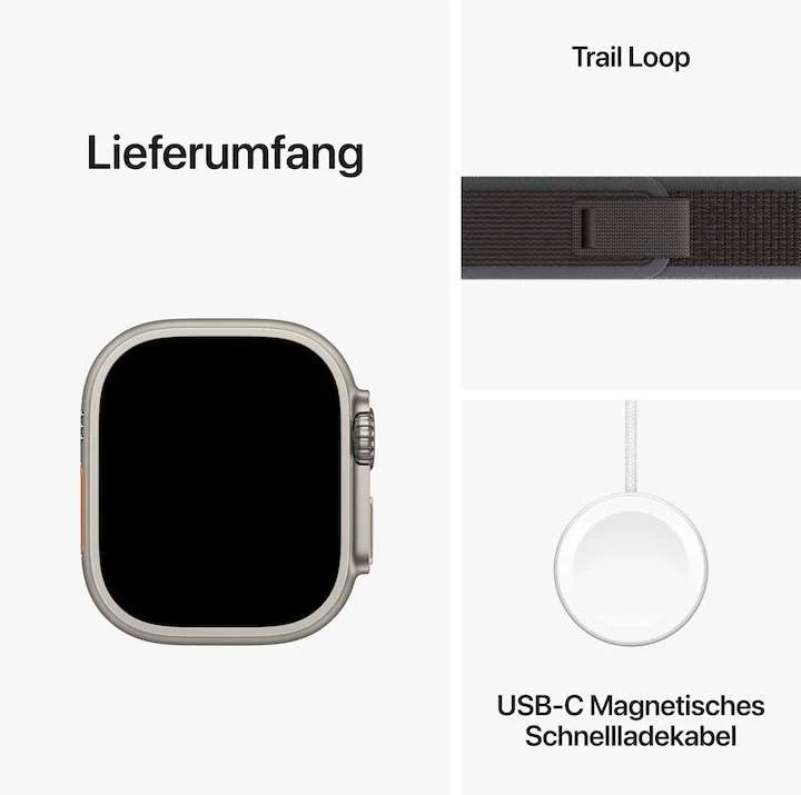 • CO₂ NEUTRAL – Die Apple Watch Ultra 2 mit dem neuesten Alpine Loop oder dem neuesten Trail Loop ist CO₂ neutral. Weitere Infos zum Engagement von Apple für die Umwelt unter