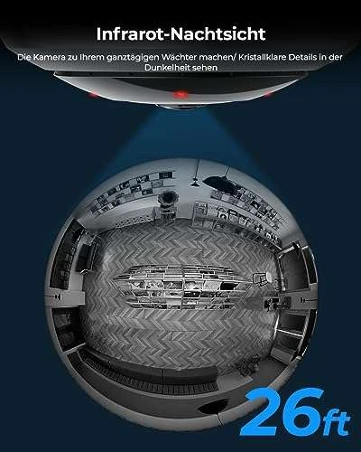 - 360° ANSICHT & 6MP HOHE AUFLÖSUNG: Die Kamera mit Fisheye-Objektiv bietet super weiten Blickwinkel, weit größer als den eines geradlinigen Objektivs. Der 360°-Panoramablick & die 6MP HD-Auflösung ermöglichen es Ihnen, mehr klare Details zu erkennen.