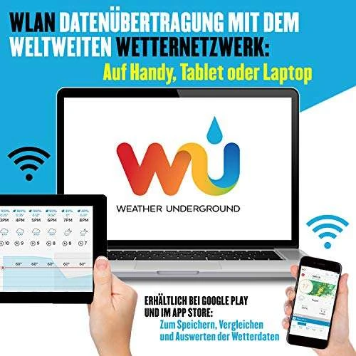 - -Die WLAN-Verbindungsoption, die es Ihrer Station ermöglicht, Ihre Daten drahtlos an das weltweit größte persönliche Wetterstations-Netzwerk, WeatherUnderground, zu übertragen