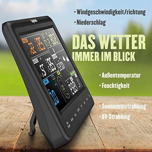 - -Mit dieser professionellen Wetterstation können Sie die Wetterbedingungen zu Hause und in Ihrem Garten mit dem brillanten, gut ablesbaren LCD-Farbdisplay überwachen