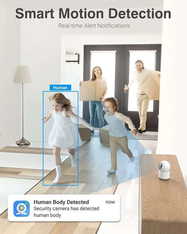 Weitere Funktionen umfassen beispielsweise einen Nachtsicht-Modus bis 8m, eine angeblich intelligente Personenerkennung samt Benachrichtigungen, Zwei-Wege-Audio und eine Alarm-Sirene (mit gerade mal 58dB aber eher ein Sirenchen).