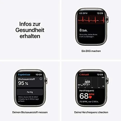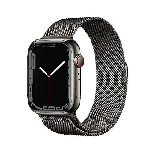 Apple Watch Series 7 (GPS + Cellular, 45mm) Smartwatch – Edelstahlgehäuse Graphit, Milanaise Armband Graphit. Fitnesstracker, Blutsauerstoff und EKGApps, Always-On Retina Display, Wasserschutz
