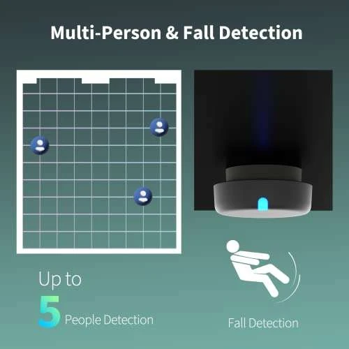 Mehrpersonen- und Sturzerkennung: Der FP2 kann bis zu 5 Personen gleichzeitig erkennen und verschiedene Szenarien und Automatisierungen auslösen. Darüber hinaus kannst du den FP2 an der Decke montieren und den Sturzerkennungsmodus wählen, der erkennt wenn jemand stürzt und dich über die App alarmiert. (Hinweis: Der FP2 ist kein medizinisches Gerät und kann nur zu Meldezwecken verwendet werden).