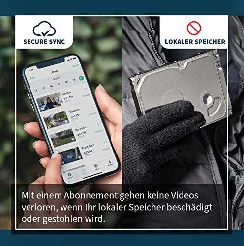 - ARLO SECURE SERVICEPLAN (separat erhältlich) sichert die Videos sicher in der Cloud. Erkennt mehr als jede andere Kamera; identifiziert und unterscheidet zwischen Personen, Autos, Haustieren und Paketen; ermöglicht Aktivitätszonen. Das Abonnement umfasst auch eine Versicherung zum Schutz vor Kameradiebstahl. 90 Tage Testversion enthalten