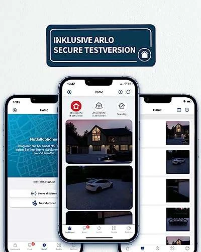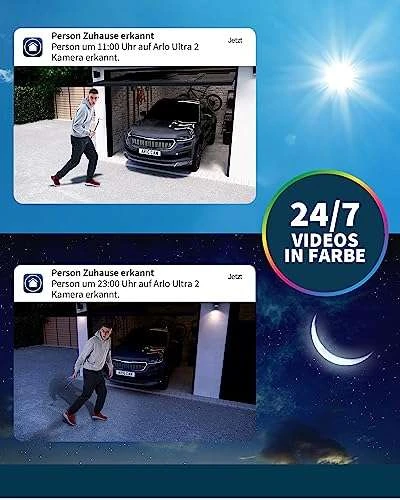 - ARLO SECURE SERVICEPLAN (separat erhältlich) sichert die Videos sicher in der Cloud. Erkennt mehr als jede andere Kamera; identifiziert und unterscheidet zwischen Personen, Autos, Haustieren und Paketen; ermöglicht Aktivitätszonen. Das Abonnement umfasst auch eine Versicherung zum Schutz vor Kameradiebstahl. 90 Tage Testversion enthalten