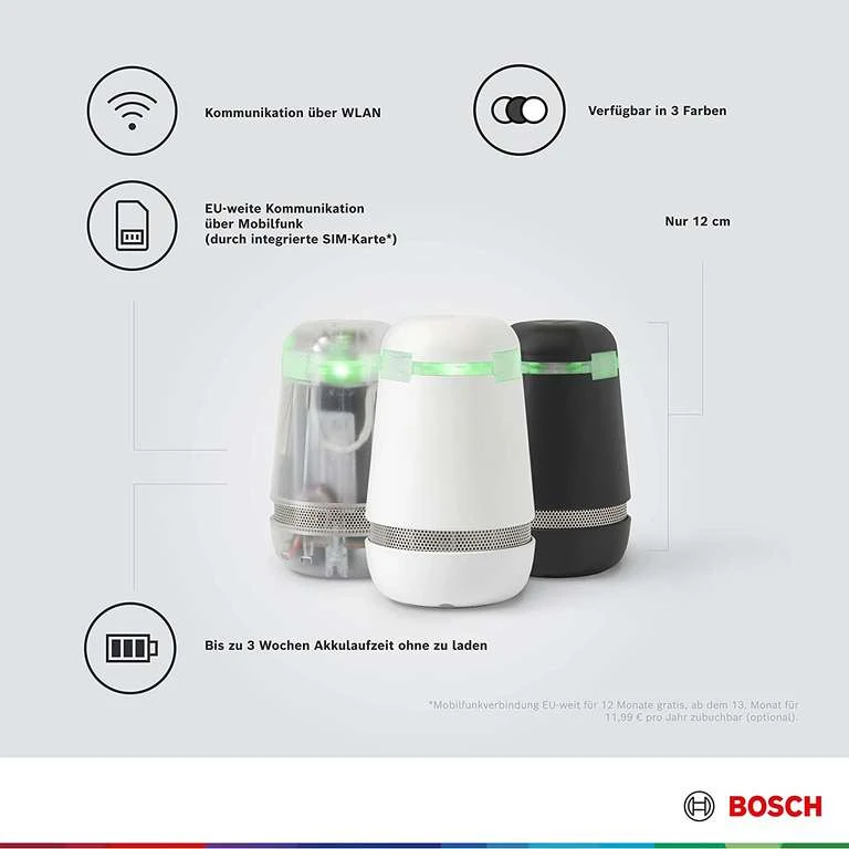 - Mehrwöchige Akkulaufzeit: Du brauchst Dir keine Sorgen darüber zu machen, dass der Alarm den Geist aufgibt. Bosch spexor verfügt über eine Akkulaufzeit von mehreren Wochen. Dies ermöglicht Dir deshalb auch einen mehrwöchigen, sorgenfreien Urlaub.