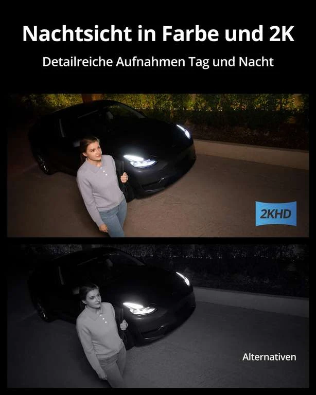 - Volle 2K HD Auflösung mit einem großen Blickfeld: Livestream und das Videomaterial in voller 2K-HD-Farbnachtsicht liefern alle Details glasklar. Die
