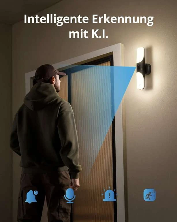 Steuerung der Wall Light Cam über die App: Aktiviere Lichter, erhalte Benachrichtigungen, nutze das 2-Wege-Audio und vieles mehr – von überall aus.