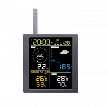 multifunktionale Kombiaußeneinheit (Temperatur, Luftfeuchtigkeit, Niederschlag, Windrichtung, Windgeschwindigkeit) – platzsparende Mastanbringung