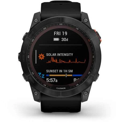 Stell dich mit der robusten fēnix 7X Solar-GPS-Multisportuhr jeder Herausforderung beim Sport oder bei Outdoor-Aktivitäten. Die Power Glass Solar-Ladelinse nutzt die Sonnenenergie und verlängert so die Akkulaufzeit für erweiterte Trainingsfunktionen und Sport-Apps, sowie Sensoren für Gesundheitsüberwachung und mehr.