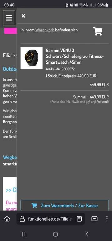 Kompatibel mit der Garmin Connect App für iOS und Android
