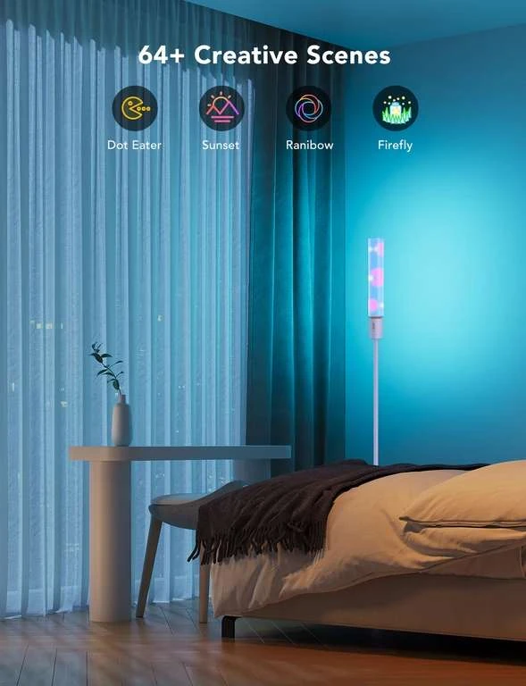 - Dynamic RGBIC Lighting Effects: Govee’s decorative floor lamp provides millions of colors and 64 preset scene modes on Govee Home App.