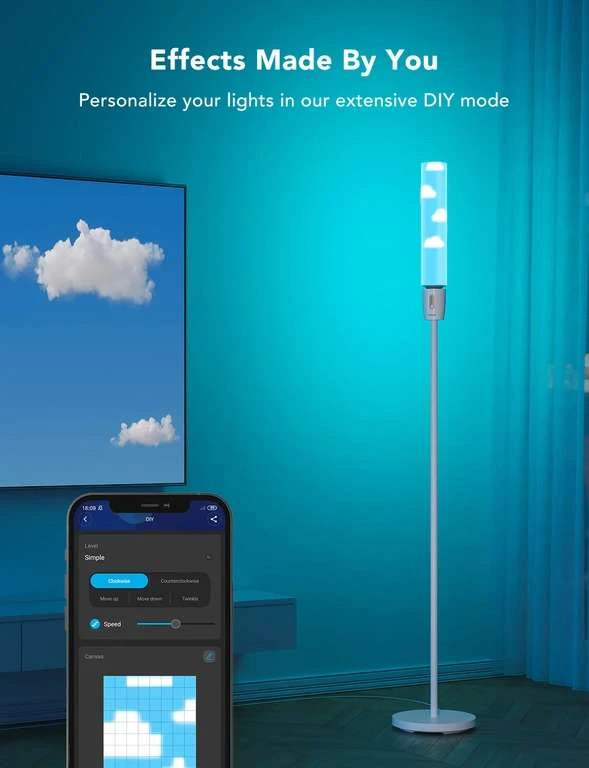 - Creative DIY Mode: Personalize light effects on your colorful floor lamp and save them for later.