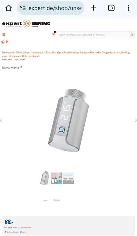 Homematic IP Heizkörperthermostat – Evo in der Farbe silber