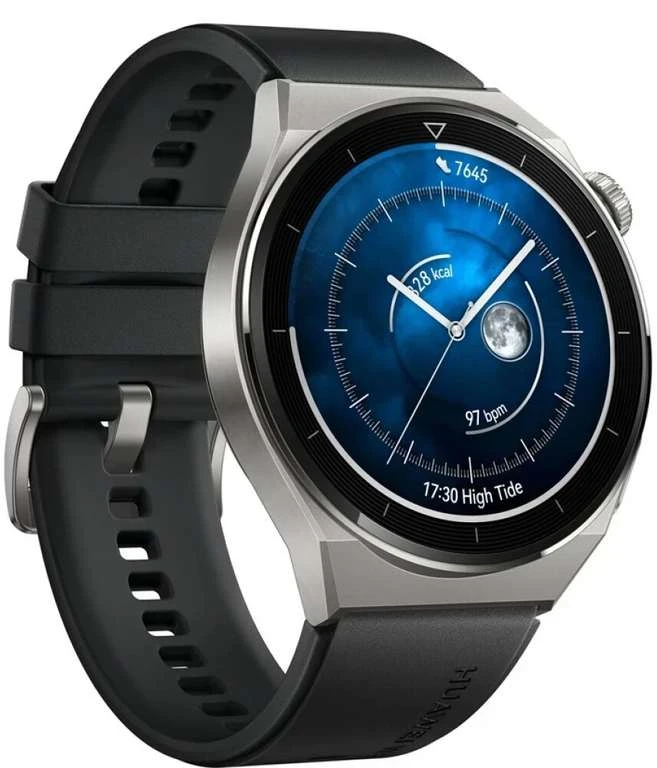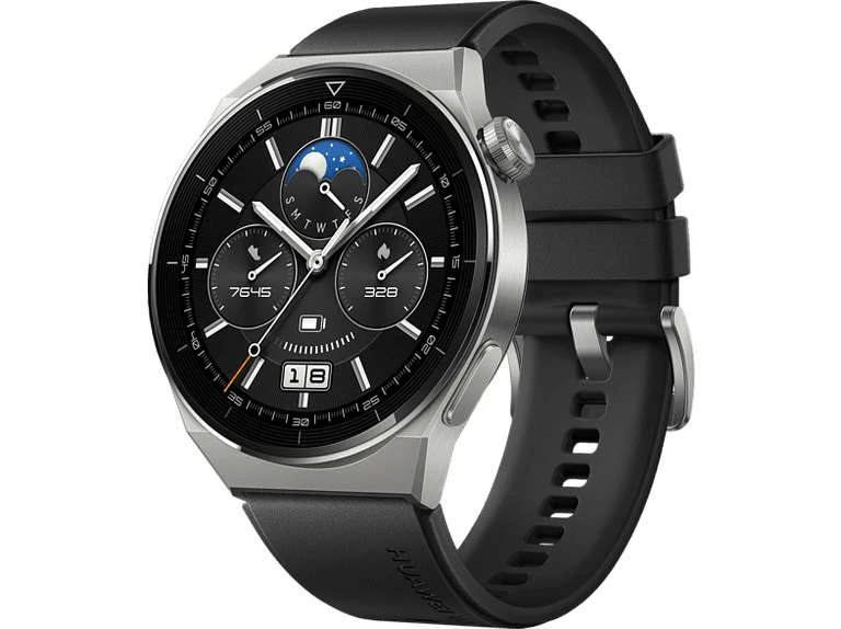 Mit der luxuriös aussehenden Huawei Watch GT 3 Pro Titanium Active Schwarz 46 mm kannst du deine sportlichen Leistungen messen und deine Nachrichten über dein Handgelenk abrufen.