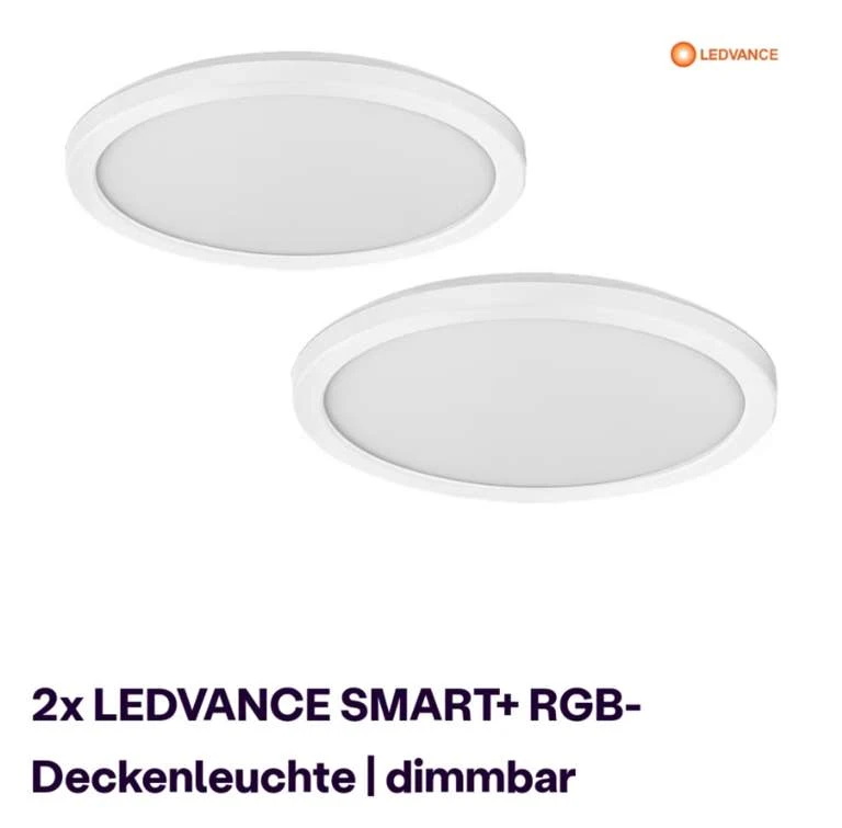 Über Ibood bekommt Ihr aktuell die Ledvance Smart+ RGB Deckenlleuchte im Doppelpack für 40,90€ inkl. Versand anstatt nächstbesten Preis nach . Macht eine satte Ersparnis von effektiven 49,37% Denkt bitte daran, evtl. Rückversand ist von Euch zu tragen.