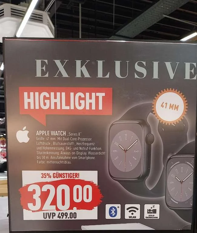 Meine Mutter war gestern dort und entdeckte ein Angebot für die Apple Watch Series 8 in 41mm für 320€.