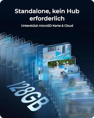 - 24/7 SCHUTZ: Bleibt im Standby-Modus und wacht nur beim Erkennen der Bewegung auf. Alle Bewegungsereignisse werden lokal auf der microSD-Karte (max. 128 GB) gespeichert und können später abgespielt werden, auch bei dem Stromausfall oder der abgebrochenen WiFi-Verbindung. Sicherer, sorgenfreier 24/7-Schutz.