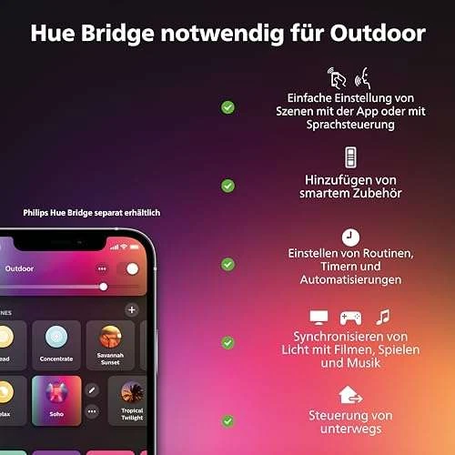 - Für das volle Smart Home Erlebnis im gesamten Zuhause: Erweitern Sie Ihr System mit der Hue Bridge (separat erhältlich) und entdecken Sie viele weitere Funktionen
