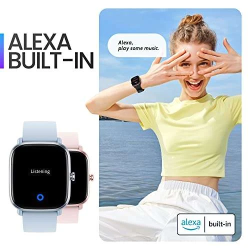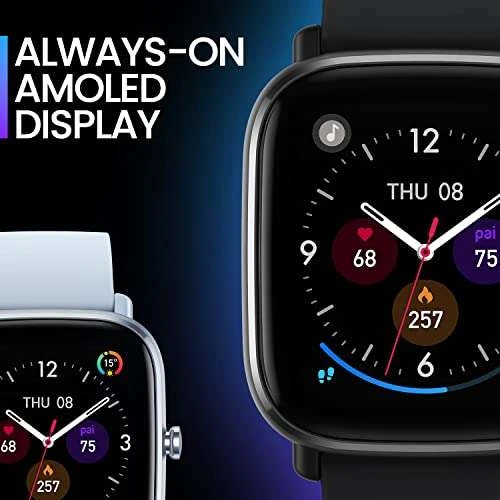 Einzigartiges Design und vielfältige Zifferblätter: Amazfit GTS 2 Mini Smartwatch mit randlosem und gebogenem 2,5-D-Glas wiegt nur 19,5 g. Der 1,55 Zoll AMOLED Always-on Display verfügt über mehr als 80 Zifferblätter. Das Hochladen eigener Fotos als Hintergrund wird unterstützt.