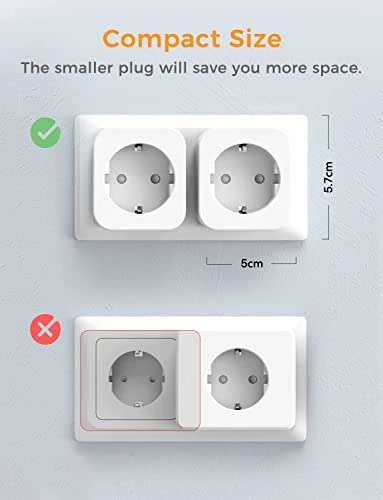 - Ultra Mini Größe: Wir haben die Abmessungen der WLAN Steckdosen aktualisiert, um die Größe auf 5 x 5,7 x 6,3 cm (Größe für 1 Stk.) zu reduzieren, während das kompakte Design Ihre zweite Steckdose frei hält. Die Mini Steckdose spart nicht nur Platz, sondern lässt sich auch leichter auf Reisen mitnehmen.