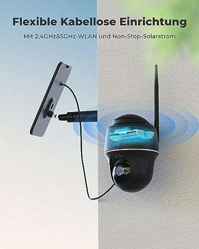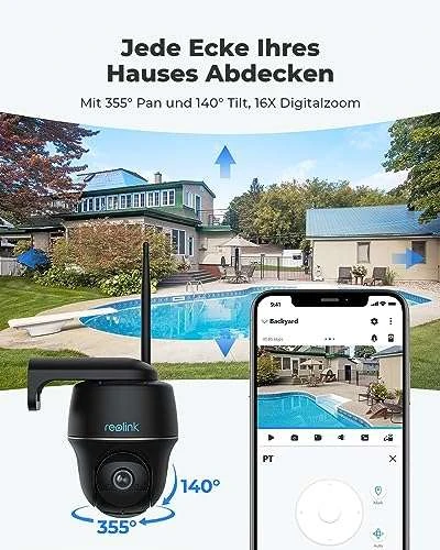 - 2K SUPER HD UND RUNDUMBLICK: Mit einer hohen Auflösung von 2560 x 1440 nimmt diese Überwachungskamera Aussen schärfere und klarere Videos auf als 1080p Kameras. Mit 355° Schwenk & 140° Neigung bietet sie eine Rundumsicht und deckt mehr Bereiche ab, um die Sicherheit Ihres Hauses zu gewährleisten.