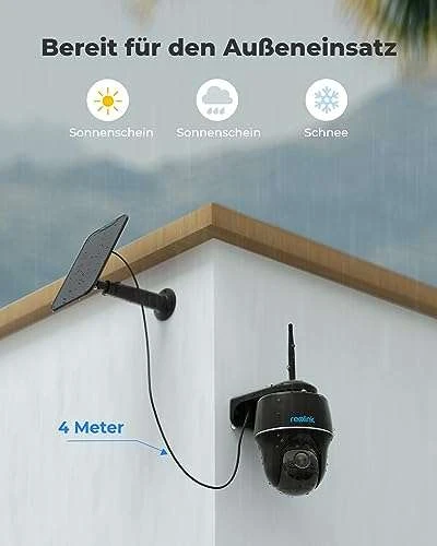 - 100% KABELLOS UND SOLARBETRIEBEN: Dank der einfachen Installation ohne kompliziertes Werkzeug und dem kabellosen Design kann diese schwarze Solar-Kamera überall eingesetzt werden. Zur Non-Stop-Stromversorgung können Sie sie einfach mit dem mitgelieferten Reolink Solarpanel verbinden.