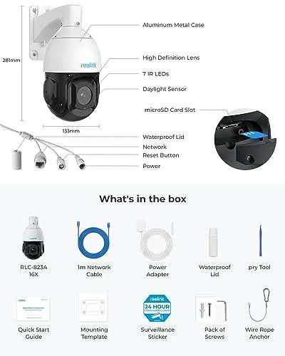 Ihr habt ein großes Gelände und wollt dennoch alles Im Blick behalten? Schaut euch die RLC-823A 16X von Reolink an. Dank 4K gekoppelt mit 16x optischem Zoom und Schwenk- und Neigefunktion dürfte euch nichts entgehen. Die automatische Verfolgungsfunktion hilft dann zusätzlich.