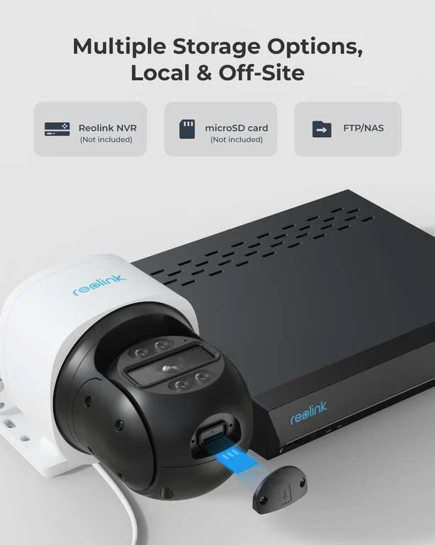 Die Aufnahmen landen wie immer bei Reolink auf der microSD-Karte und müssen demnach keine (chinesische) Cloud durchlaufen. Alternativ stehen aber auch ONVIF, FTP oder RTSP zur Verfügung, um ein NAS zu verbinden.