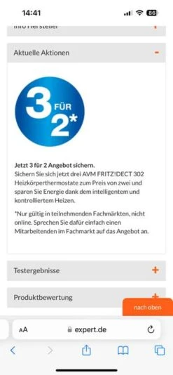 AVM FRITZ DECT 302 Heizkörperthermostat – 3er Set (48,33 €/Stück) Bei Expert (ggf. Lokal??)