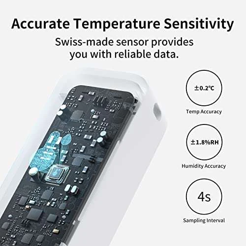 Empfindlicher für Temperatur & Feuchtigkeit: Mit dem eingebauten industriellen Schweizer Sensirion-Sensor können Sie eine höhere Genauigkeit von bis zu ± 1,8 % RH, ± 0,2 ℃ erwarten, mit einem schnelleren und genaueren 4-Sekunden-Abtastintervall, um die Temperatur und Luftfeuchtigkeit in Ihrer Wohnumgebung stets zu überwachen.