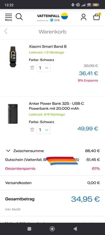 Hier gibt es zbs. Das Xiaomi Smart Band 8, für 34.95€ + Anker Powerbank aus dem Gutschein.