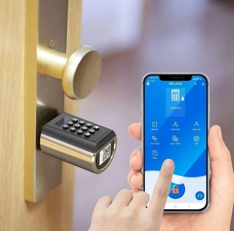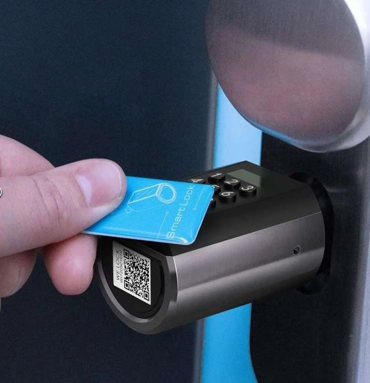 Öffnen der Tür mit einem Zahlencode, mit einer RFID-Karte oder mit unserem temporären App-Passwort.